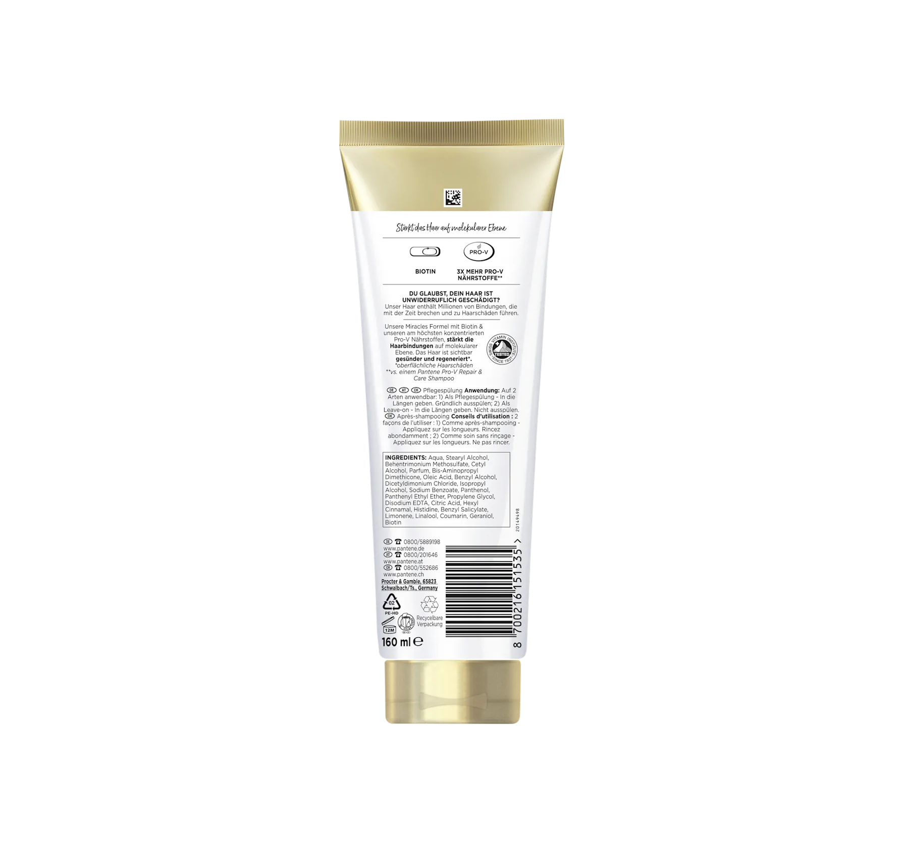 潘婷PRO-V奇蹟修復護髮素,幫助秀髮煥發新生,煥發健康光澤。配方富含生物素和濃縮Pro-V營養成分。這款護髮素能夠從分子層面強化髮絲,帶來令人驚豔的效果。