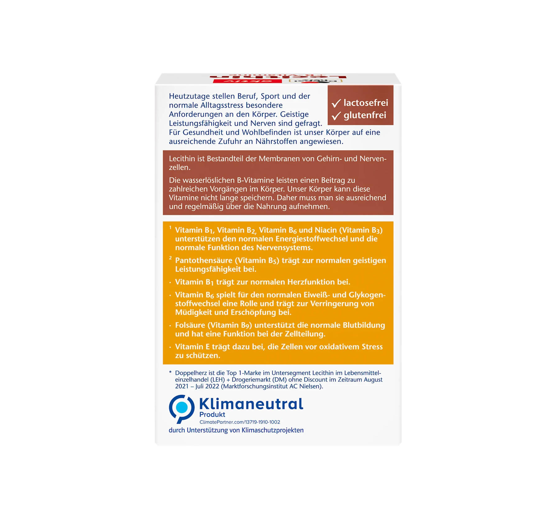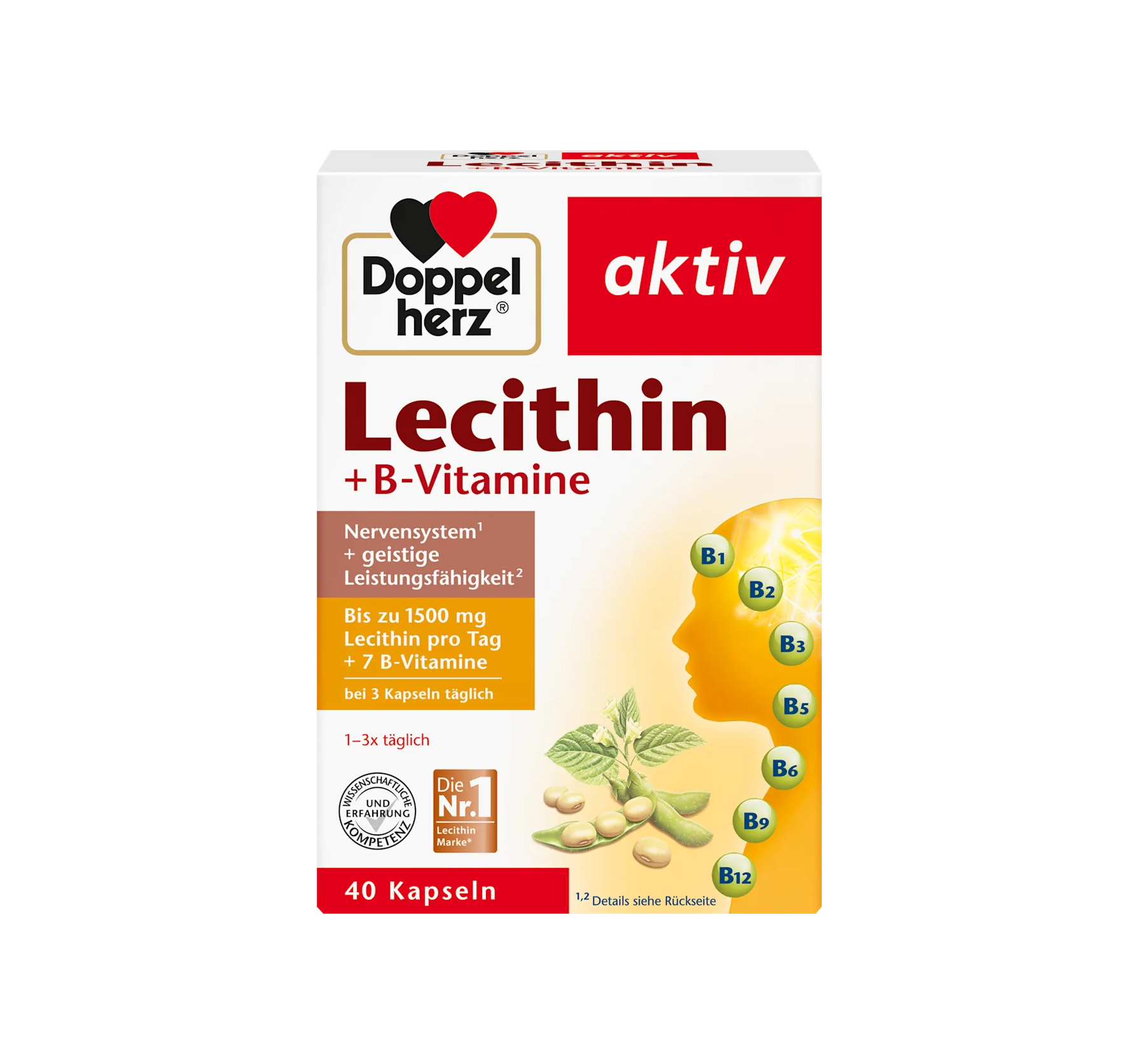 雙心活性卵磷脂富含泛酸,有助於維持正常的腦力活動。膠囊不含麩質和乳糖。