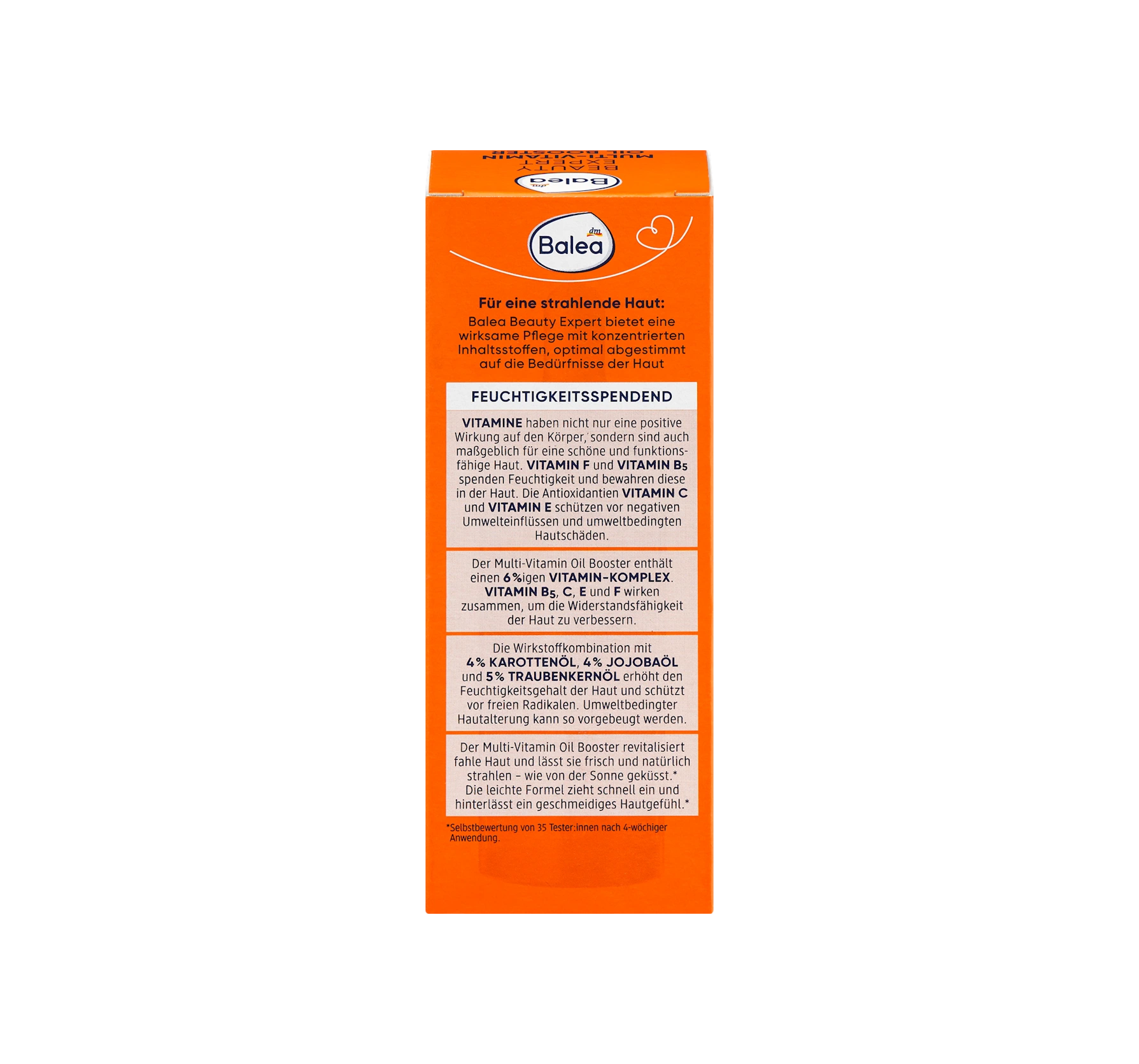 煥發光彩:Balea Beauty Expert 提供高效護理,蘊含濃縮成分,完美契合肌膚需求。維生素不僅對身體有益,也是維持美麗肌膚和維持功能性肌膚的必需品。維生素 F 和維生素 B5 能夠補充水分,並將其鎖在肌膚深處。抗氧化劑維生素 C 和維生素 E 能夠抵禦外部環境的負面影響和對肌膚的傷害。複合維生素油滋養霜含有 6% 的維生素複合物。維生素 B5、維生素 C、維生素 E 和維生...