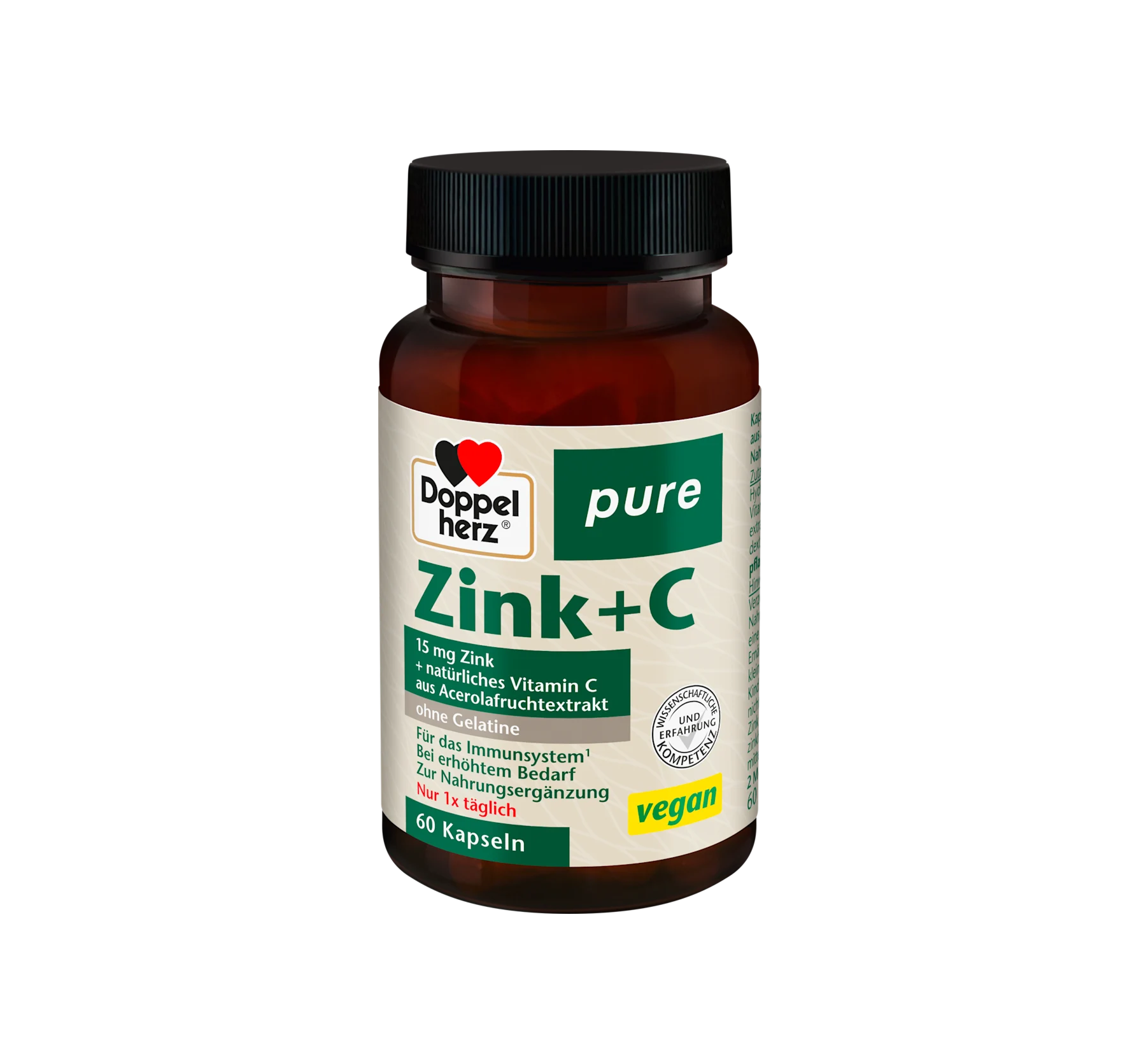 Doppelherz 純鋅+維生素C膠囊富含鋅和來自針葉櫻桃的天然維生素C,有助於保護細胞免受氧化應激,並促進免疫系統的正常運作。由於採用植物膠囊殼且不含明膠,此膠囊也適合素食者和純素食者服用。此外,它不含乳糖和麩質。此產品可透過快遞訂購或在我們的直銷店購買。